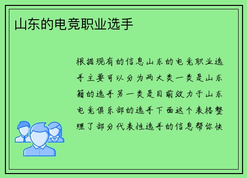山东的电竞职业选手